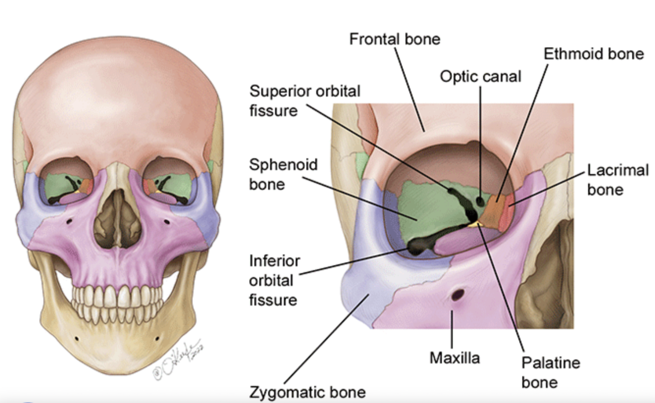 The orbit has 4 walls: superior, inf., medial, lateral