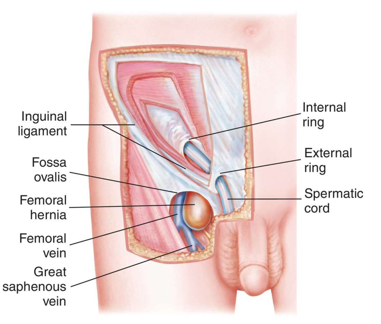 femoral hernia protrusion of a loop of intestine into the femoral canal, a tubular passageway that carries nerves andblood vessels to the thigh; this type occurs more often in women than in men. Called also crural hernia and femorocele.