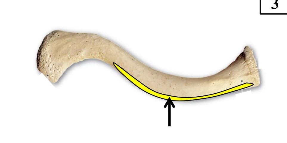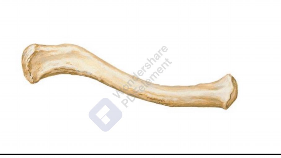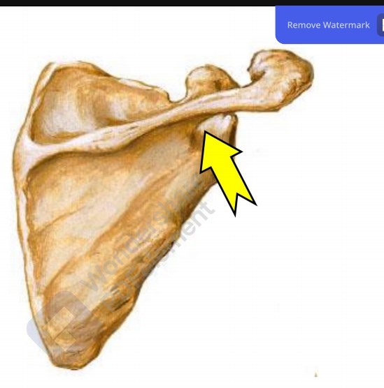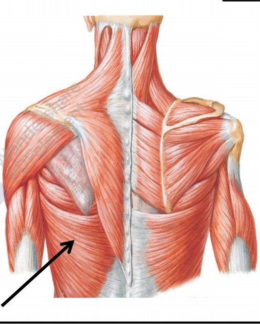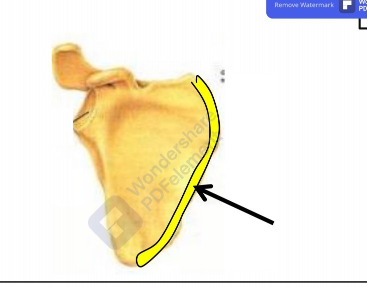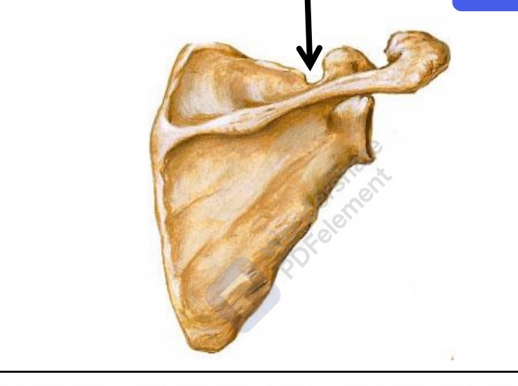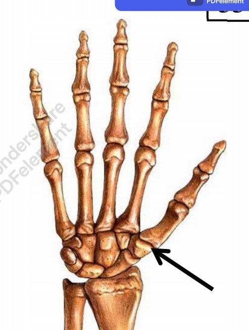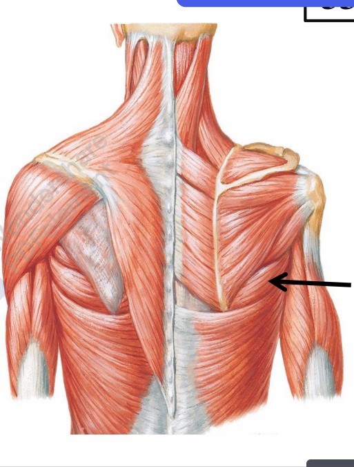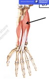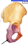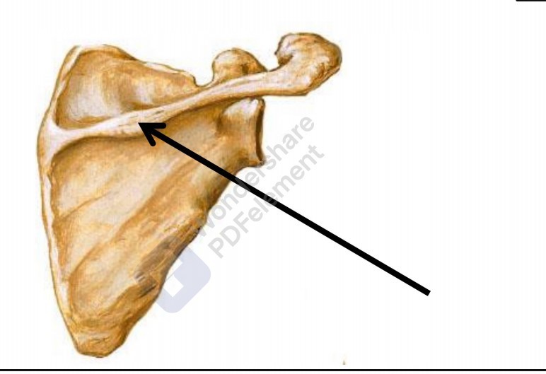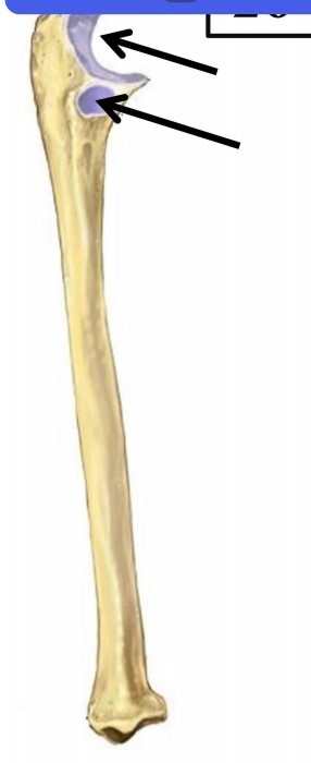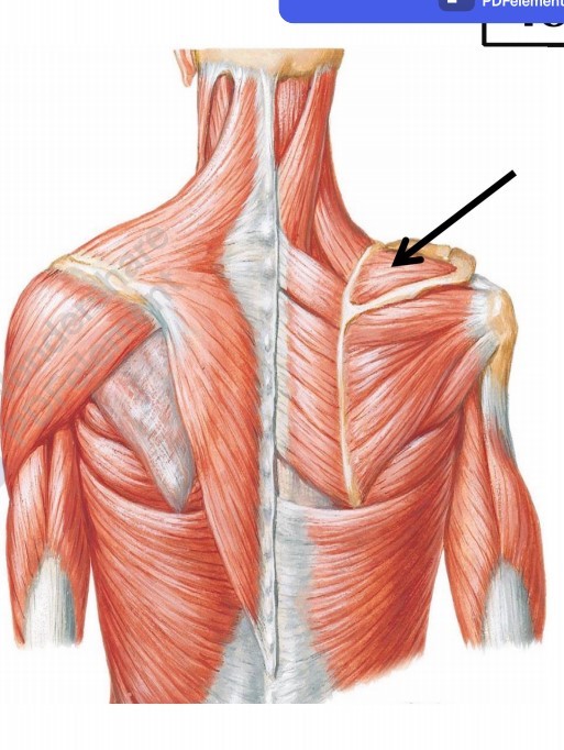 Name the muscle attached to the marked area (arrow) of the given bone and mention one action: