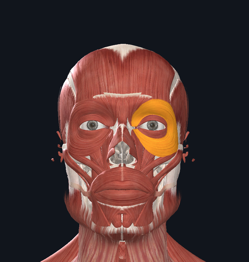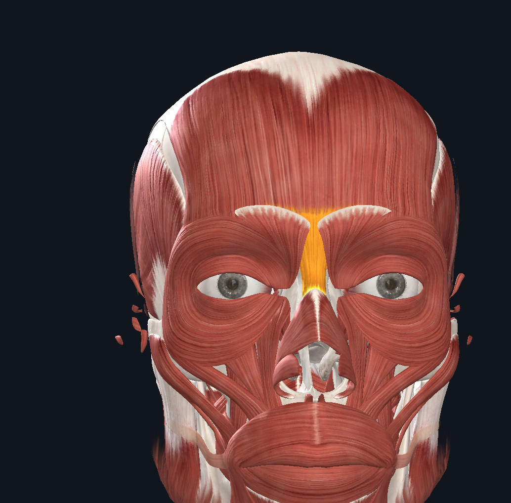 Pulls the eyebrows down