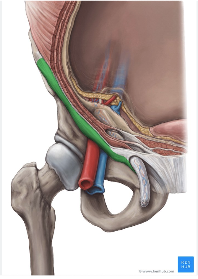 -Inguinal ligament - rolled up lower border of the external oblique aponeurosis