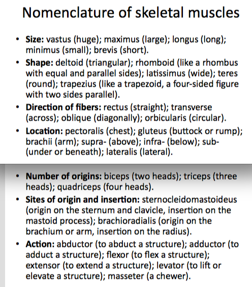 Understand the nomenclature of skeletal muscles.