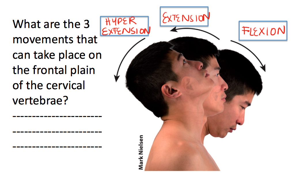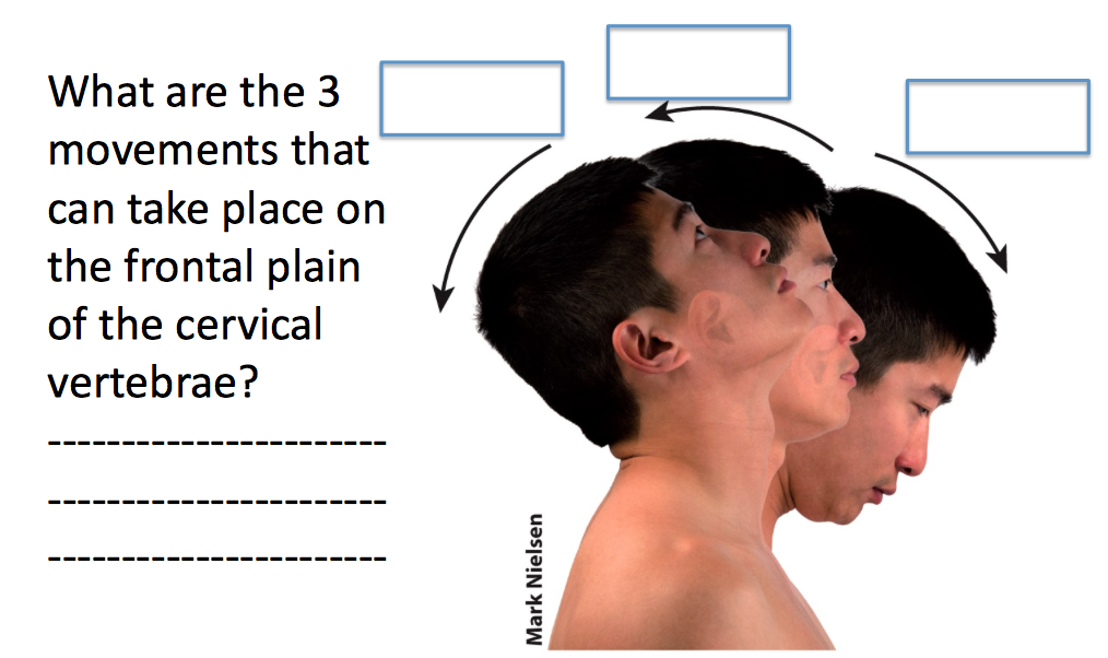 What are the 3 movements that can take place on the frontal plain of the cervical vertebrae?