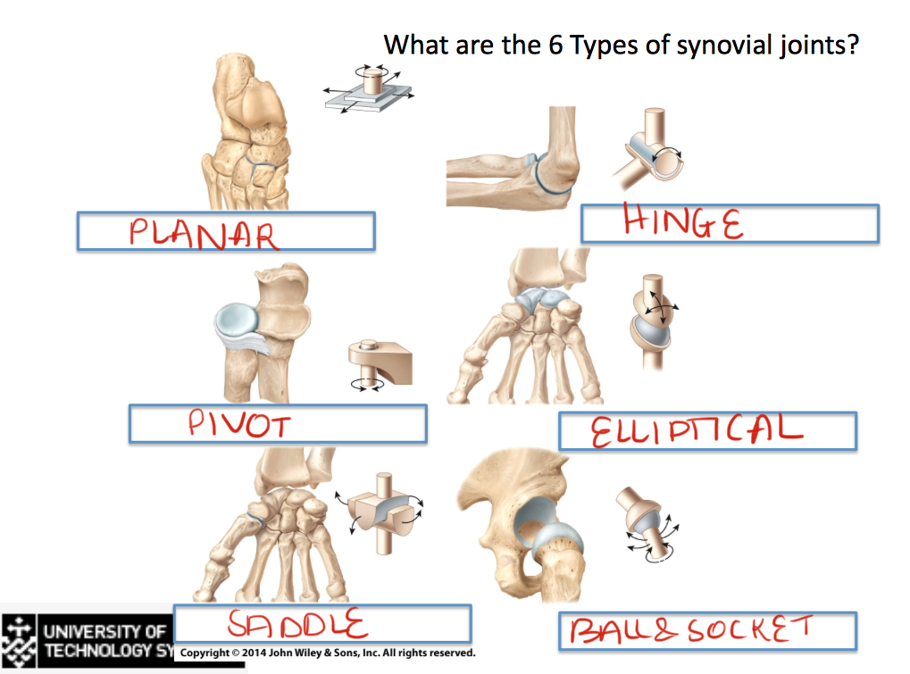 What are the 6 Types of synovial joints?