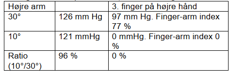 distal blodtryksmåling med kulde provokation, som viser følgende resultat: