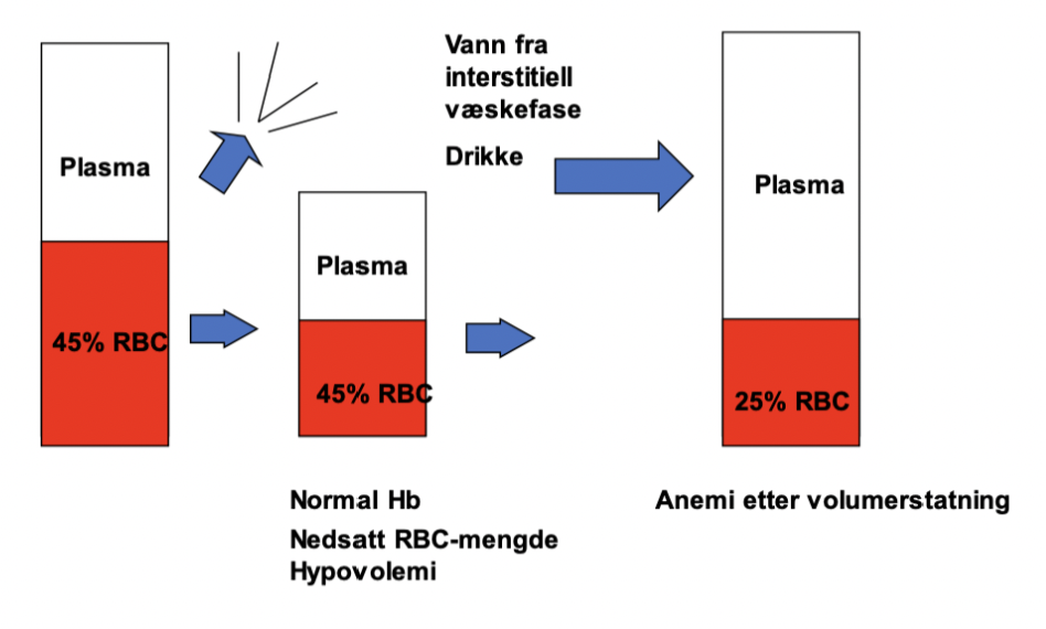 Akutt blødning endrer erytrocyttmengden, men ikke Hb-konsentrasjonen initialt