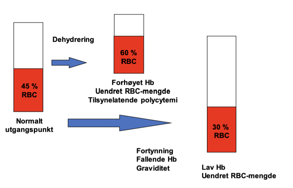 Endring i plasmavolum endrer Hb-konsentrasjon, men ikke alltid erytrocyttmengden
