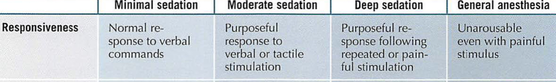 Responsivness for minimal, moderate, deep, general