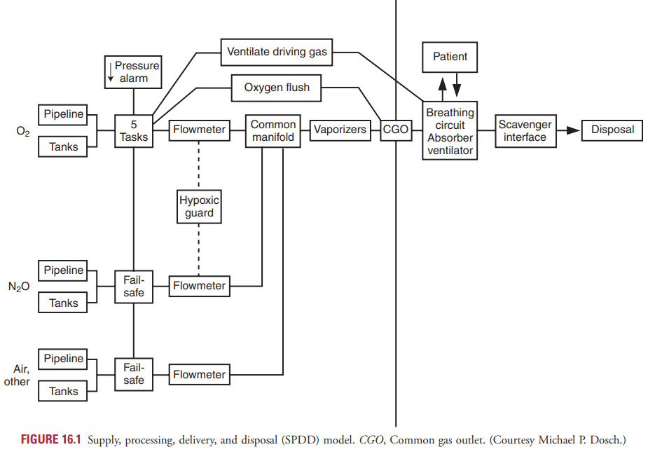 The anesthesia machine can be divided into 3 systems based on the pressure in each: