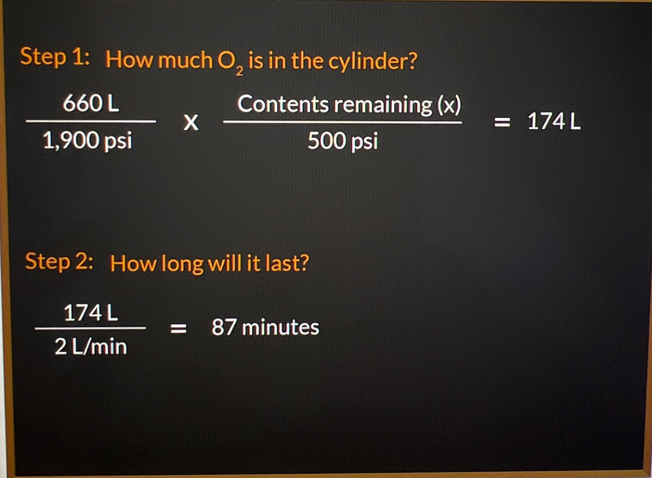 How long will your O2 tank last if has 500 psi remaining running at 2L/min?