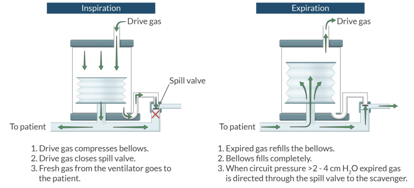 What 2 functions does the drive gas on a pneumatic ventilator serve?