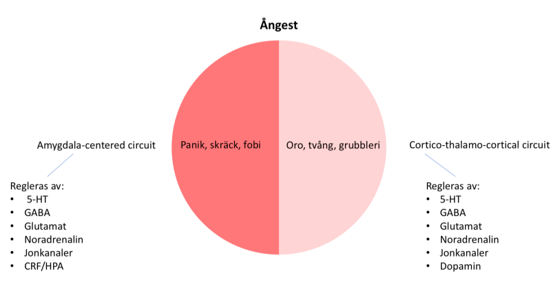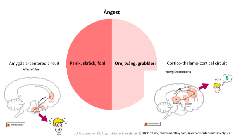 Vad är skillnaden mellan amygdala centered Circuit och CTC Circuit vad gäller ångest? (3p)