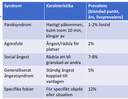 Vilka olika typer av ångestsyndrom finns och vad är karaktäristika för dom olika? (3p)