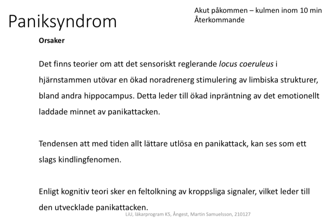 Beskriv paniksyndrom? (3p)