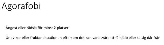 Beskriv agorafobi? (1p)