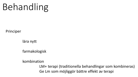 Räcker inte att säga att patienten har ångest, då dom olika ångestarna har olika behandlingar. Måste specificera vilket syndrom det handlar om, paniksyndrom etc.