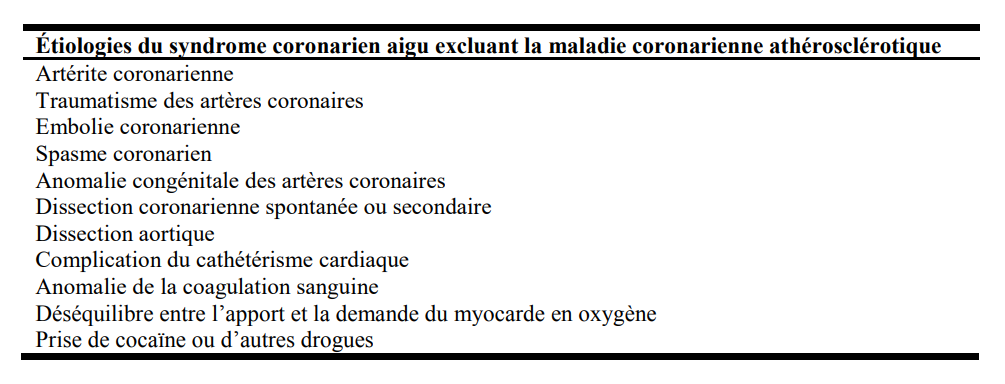 Quels sont les autres éthiologies du syndromes coronarien aigu autre que l’athérosclérose des coronnaires?