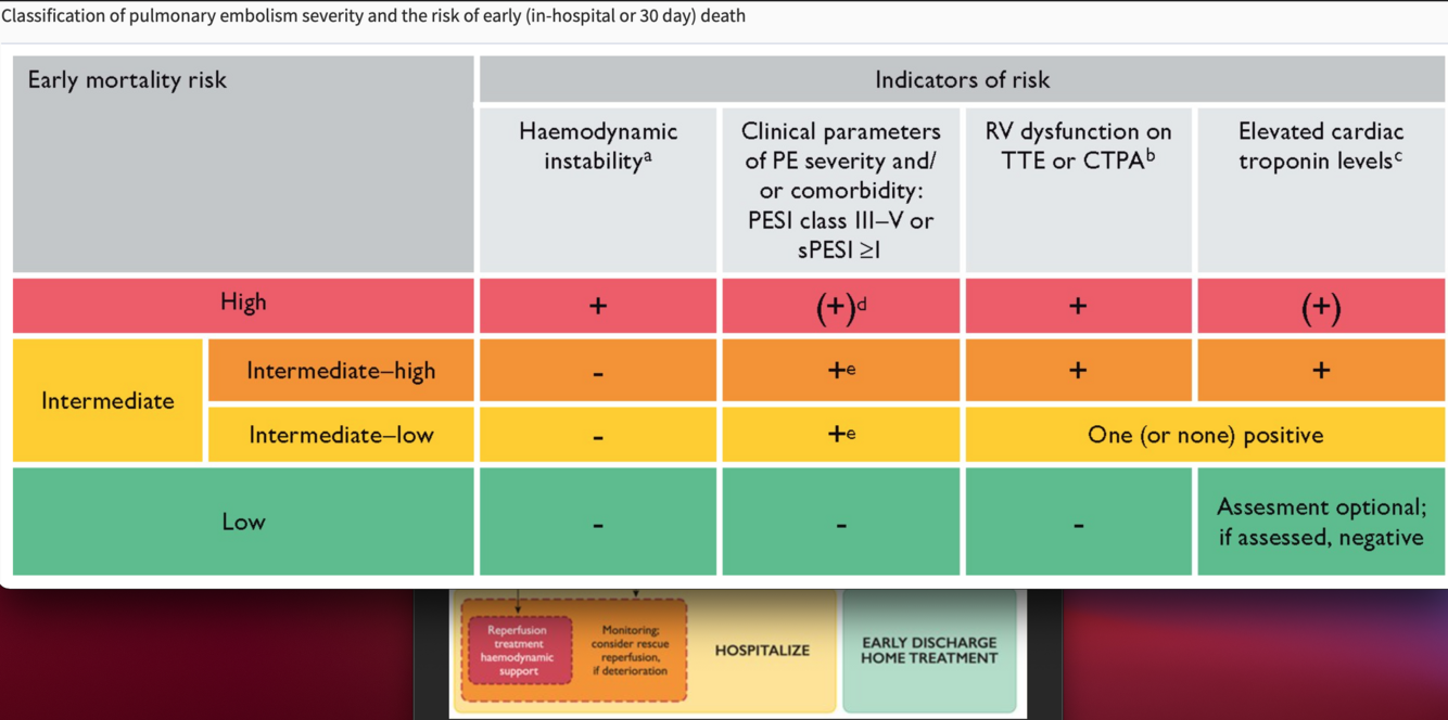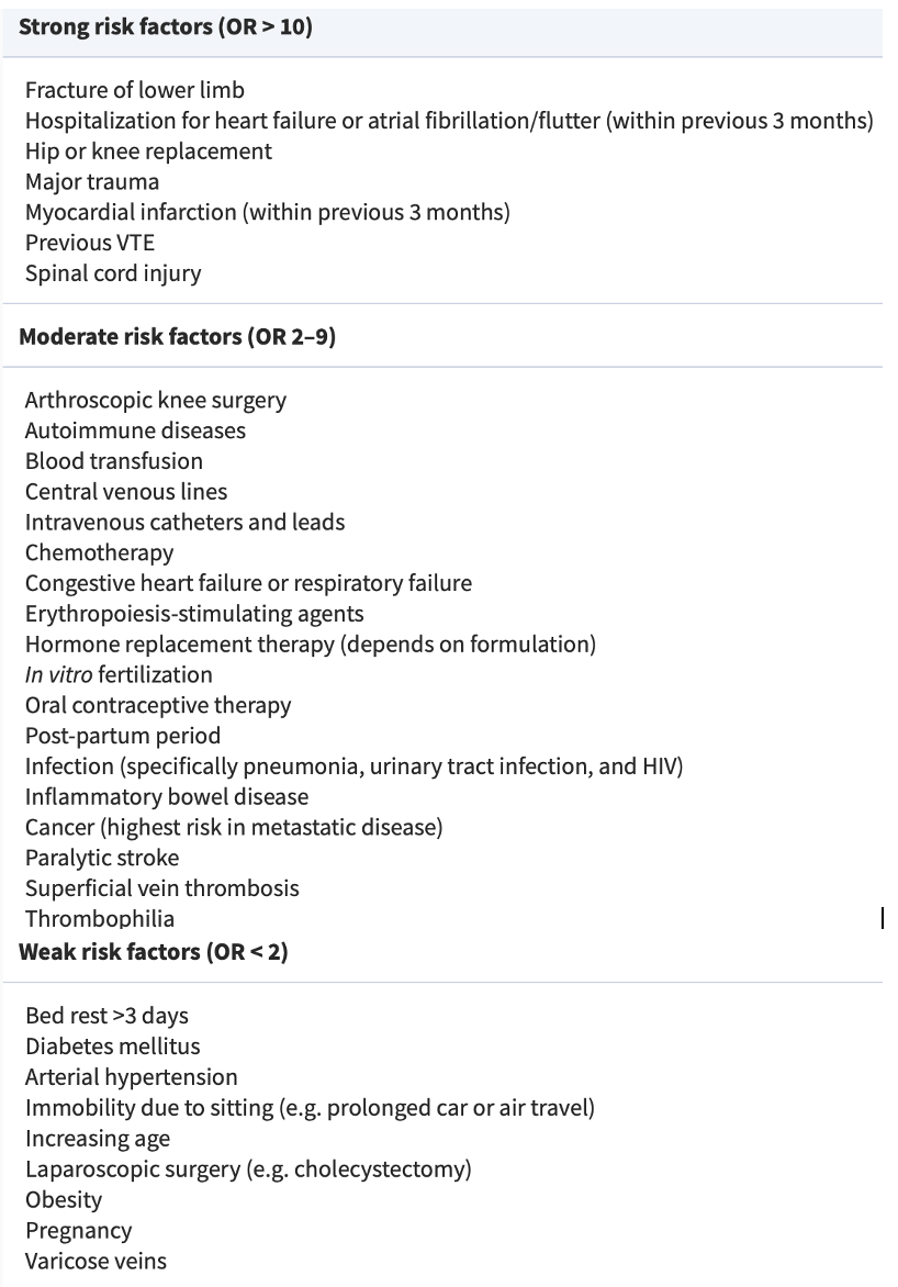 risikofaktoren für eine Lungenembolie (ESC guideline)