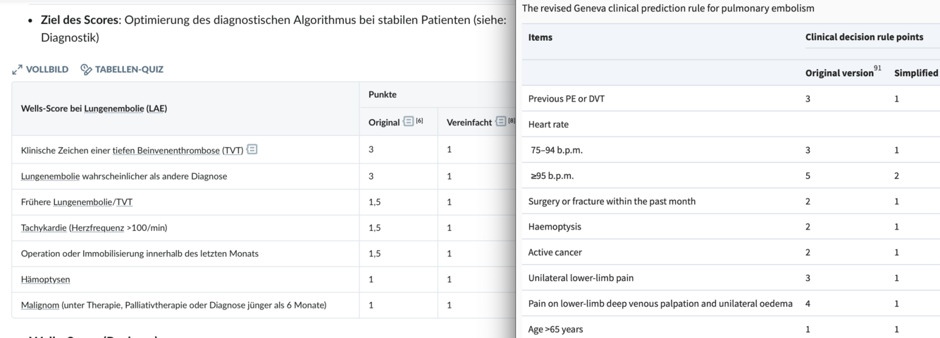 Der Geneva benutzt rein objektive Parameter während der Wells 1 subjektiven hat (LAE whs ?). Geneva Einteilung in 3 und Wells in 2 bzw 3 Kategorien.
