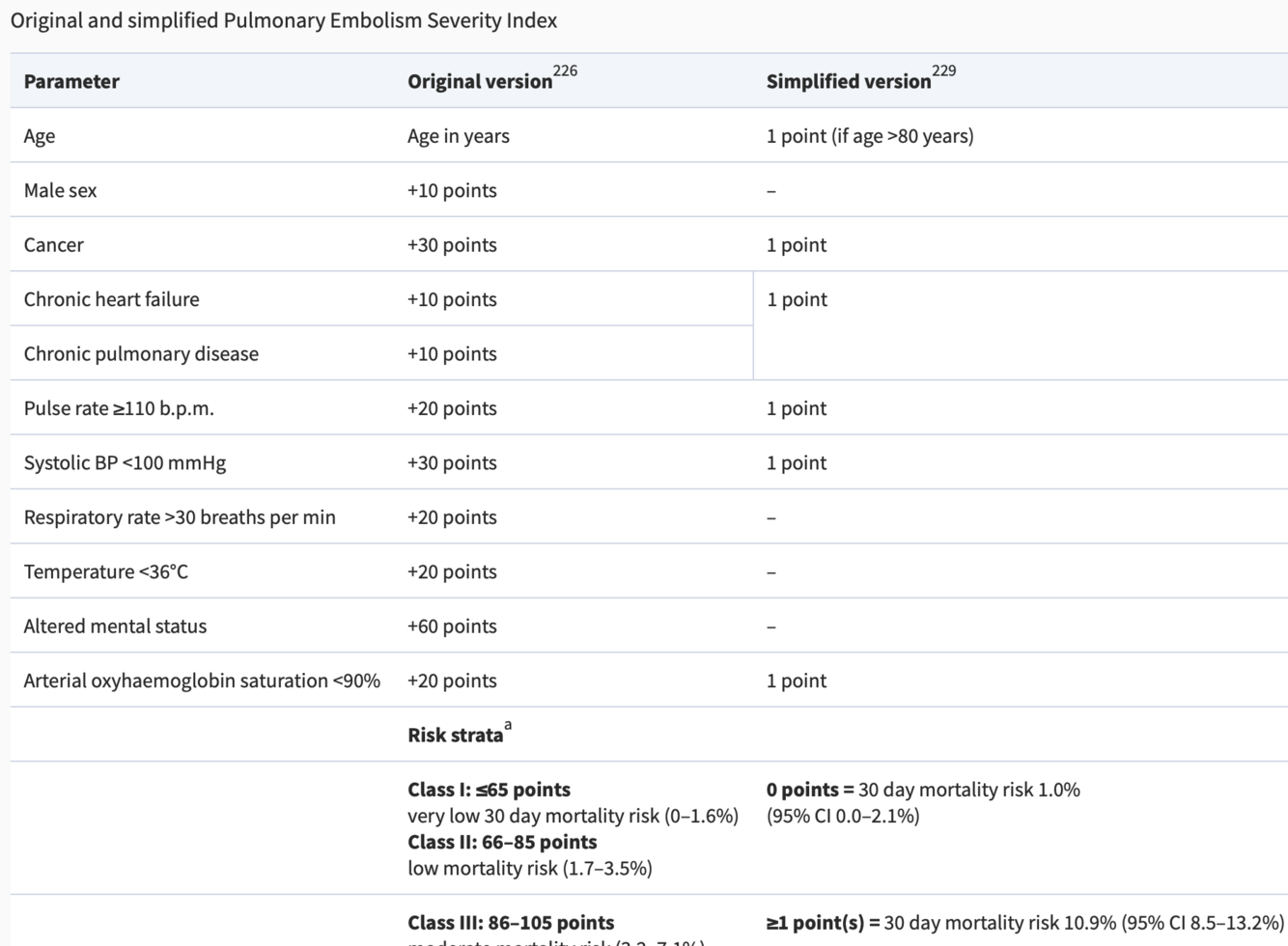 The value of empirical clinical judgement has been confirmed in several large series. The most frequent used are Geneva + Wells