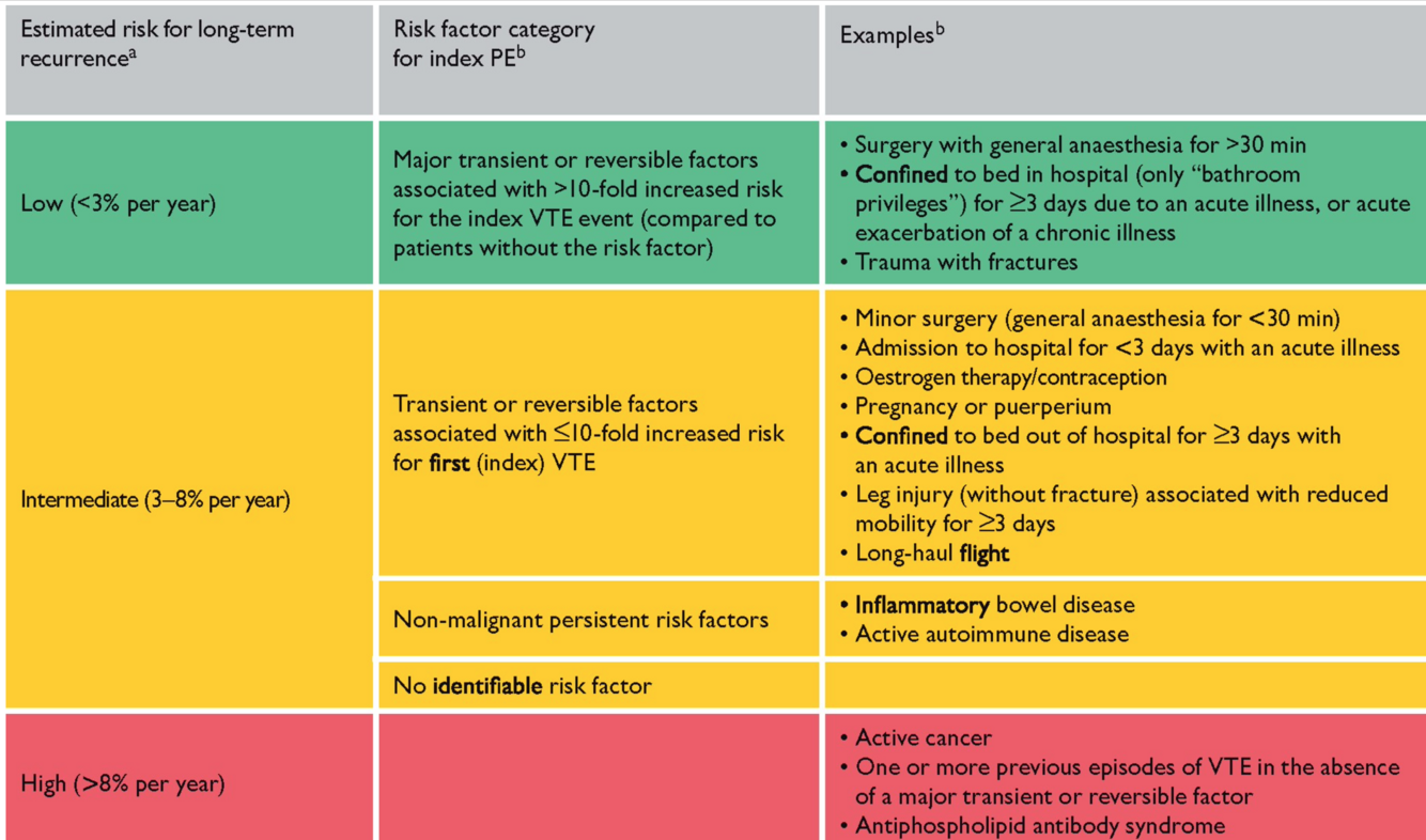 * Erste PE mit geringem, transientem oder reversiblen Risikofaktor (z. B. längere Immobilisation, geringes Trauma).