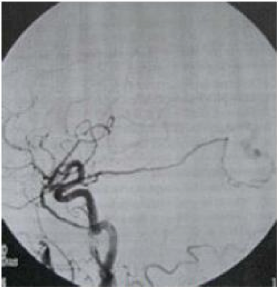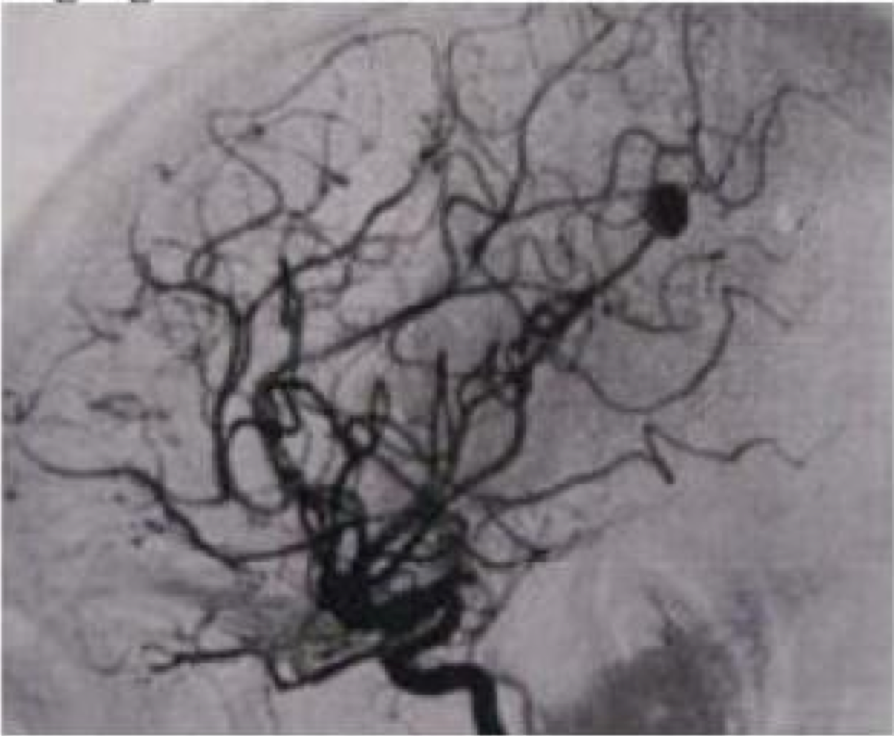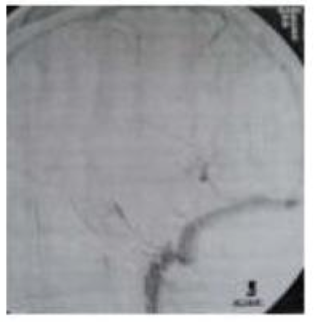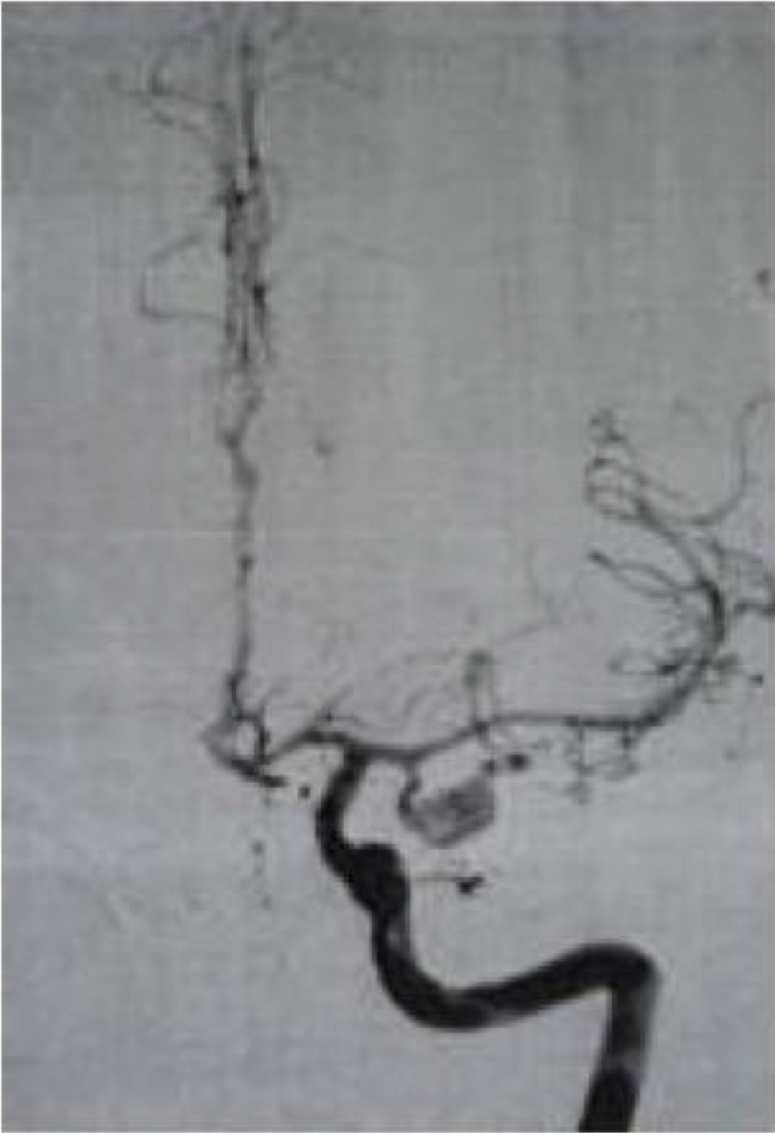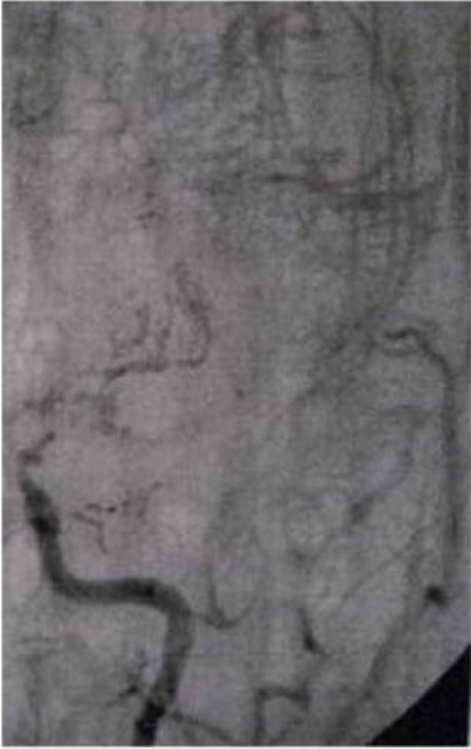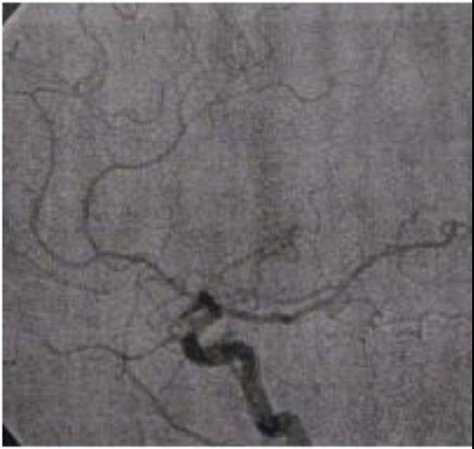 Seorang laki-laki berusia 42 th menjalani prosedur neuroradiologis intervensional terapeutik. apa yang ditunjukkan oleh angiogram di bawah ini
