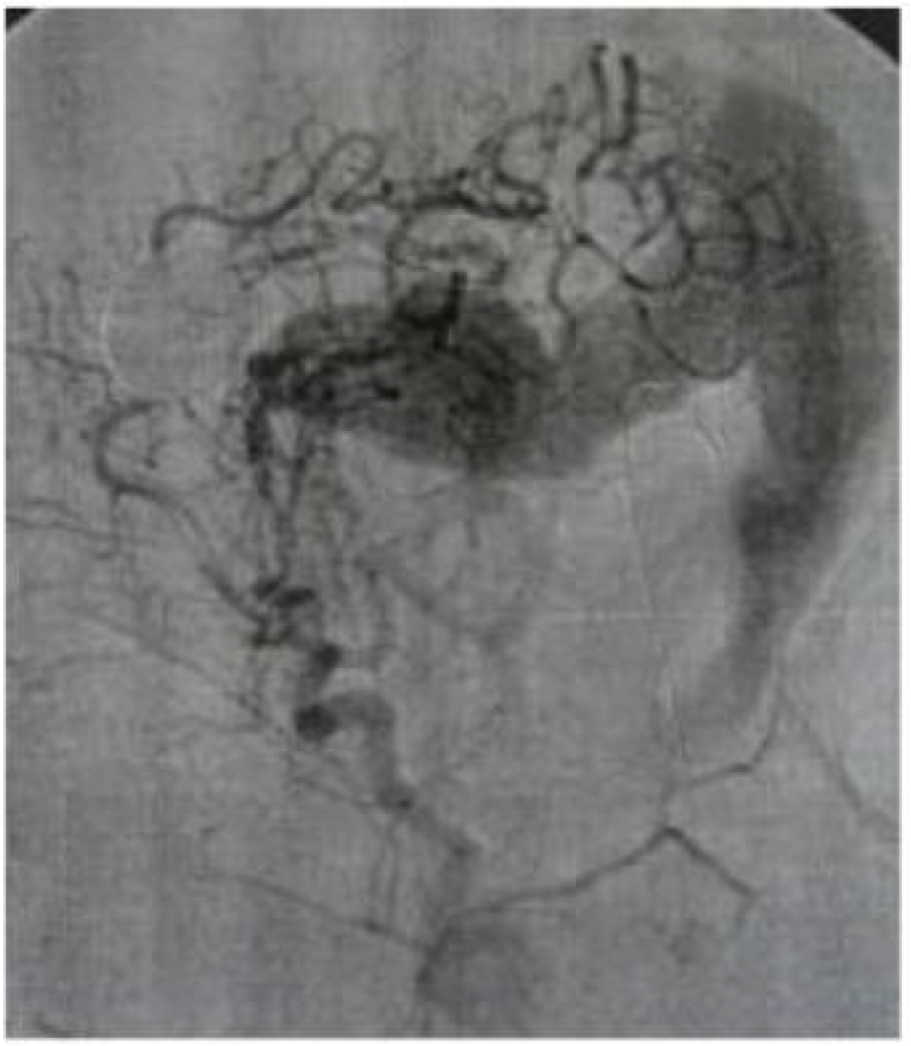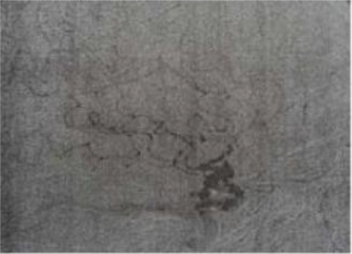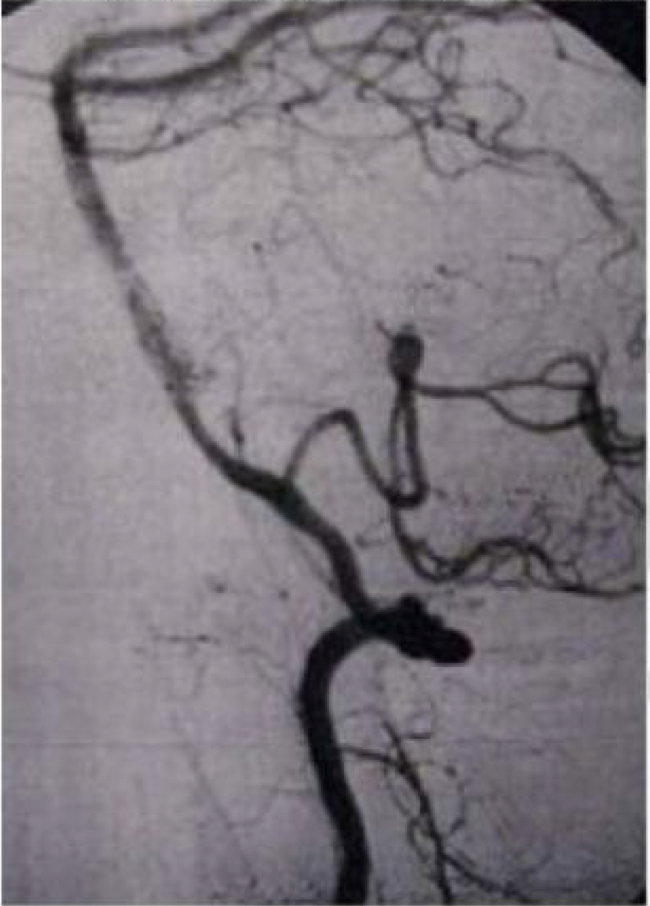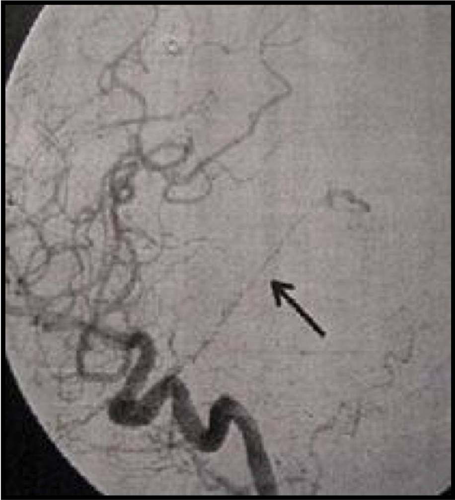 Seorang laki-laki berusia 42 th menjalani prosedur neuroradiologis intervensional terapeutik. apa yang ditunjukkan oleh angiogram di bawah ini