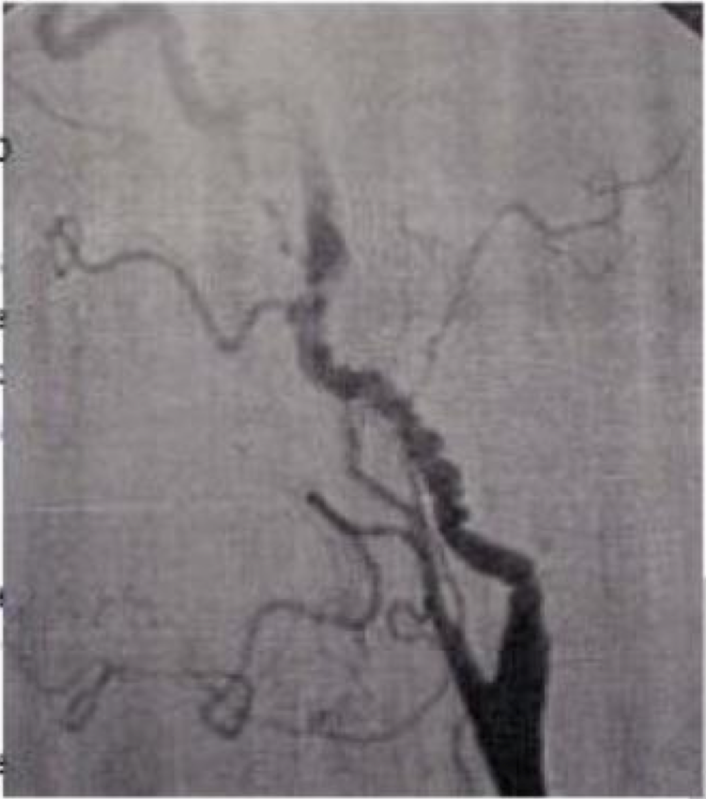 Kelainanyang dijelaskan pada angiogram karotid intern servik di bawah ini?