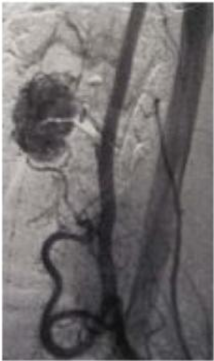 Neoplasma manakah yang ditunjukkan pada angiogram carotid luar (fase midarterial) di bawah ini?