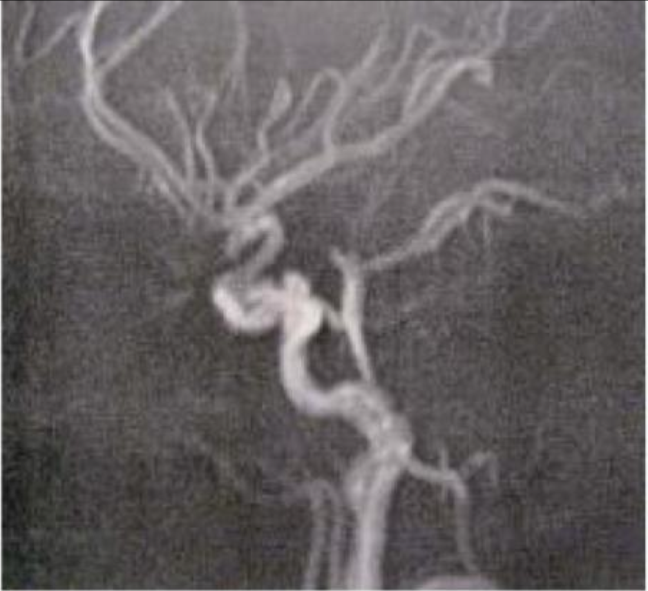 Kelainan manakah yang dijelaskan oleh angiogram arteri karotid internal lateral di bawah ini?