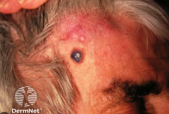 Bruis like patch with odema, becomes a violaceous plaque / nodule