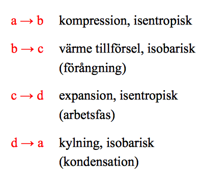 Identifiera de olika stegen i Rankine processen och beskriv förloppen (isentopisk, …)