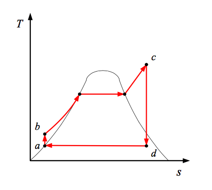 Rita ett T-s-diagram över Rankine processen