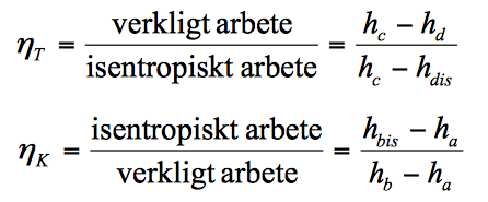 Formeln för isentropisk verkningsgrad för turbin och kompressor?
