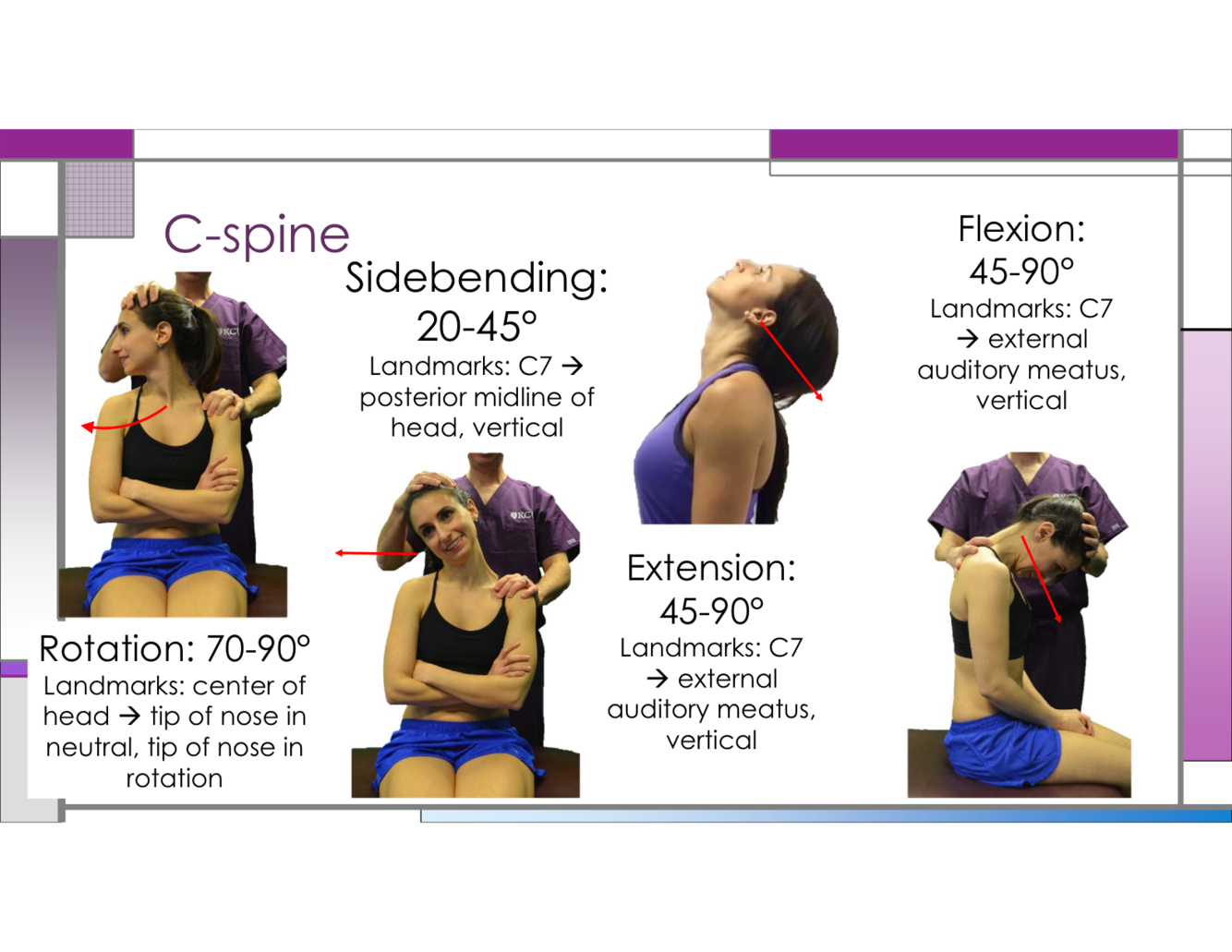 What is the normal angle for C-spine side-bending?