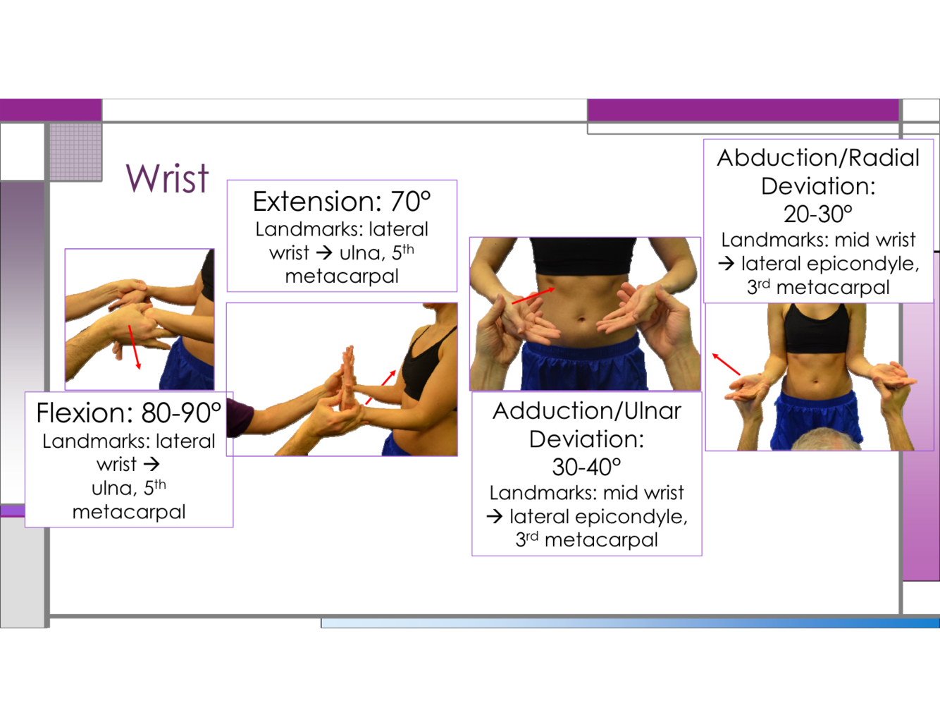 What is the normal angle for wrist flexion?