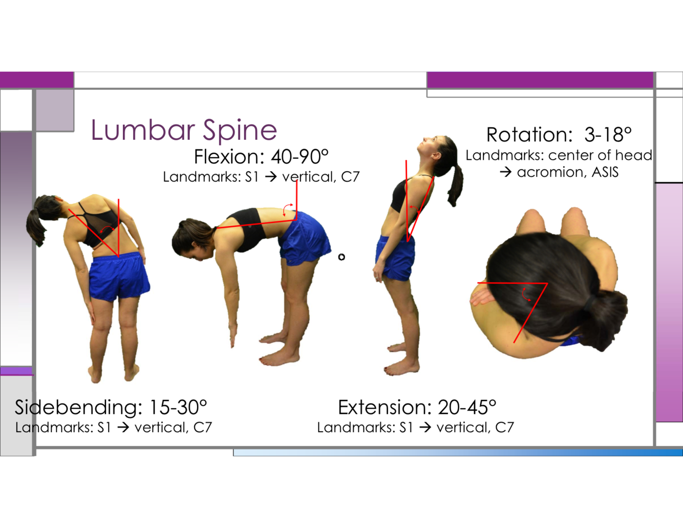 What is normal angle for lumbar rotation?