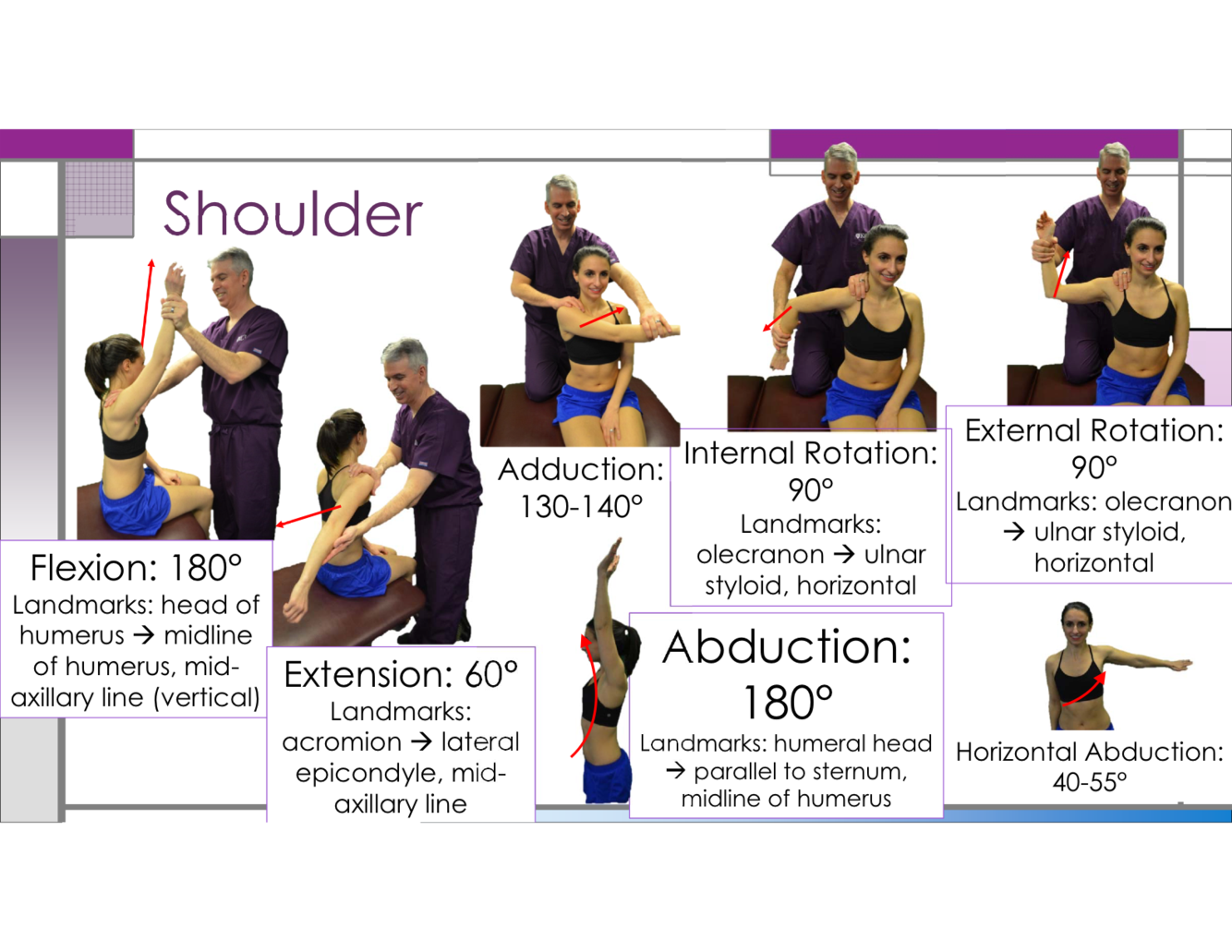 What is the normal angle for shoulder external rotation?
