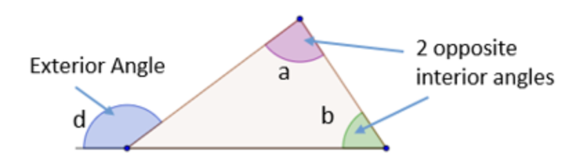 The exterior angle of a triangle is equal to the sum of the two opposite interior angles
