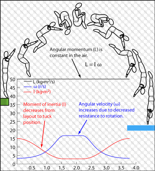 To start rotating around an axis angular momentum must be generated. In the preparation or take off phase of a rotational movement pattern an eccentric force or torque must be applied