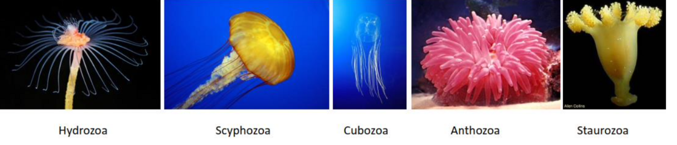 Cnidocytes: each of them is able to produce one of over 20 kinds of distinctive organelles called cnidae (e.g. Nematocysts: inject toxin for prey capture and defence)