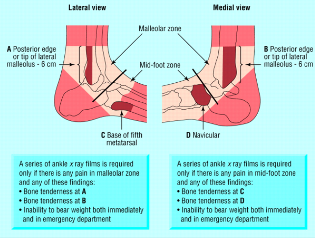 Man kan dele opp behandlingen av ankelskader i tre deler. forklar.