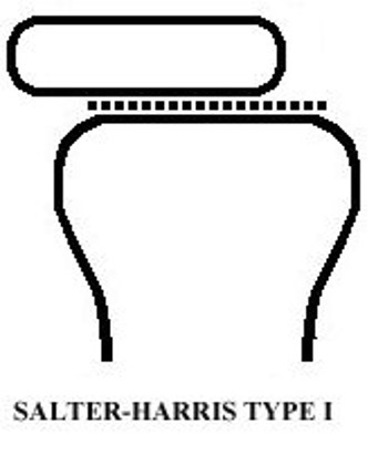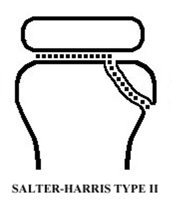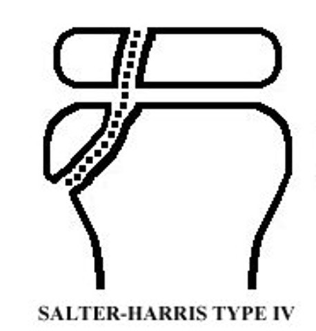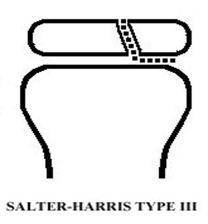 Fracture involves the epiphysis, metaphysis, and extends into the physis