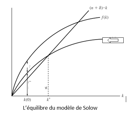 Question 1. Dans la figure ci-dessous (L’équilibre du modèle de Solow), que mesure la courbe indiquée par une flèche :