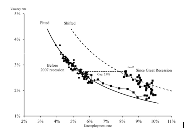 c) le déplacement de la courbe de création d’emplois vacants après 2007