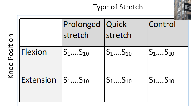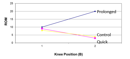 * Main effect for type of stretch (prolonged vs. quick vs. control) irrespective of knee position.