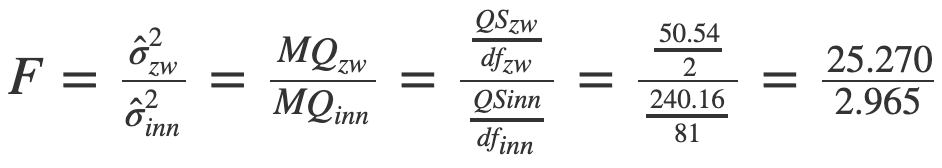Mittelquadrate = Varianzschätzungen, also in der Formel σ̂2