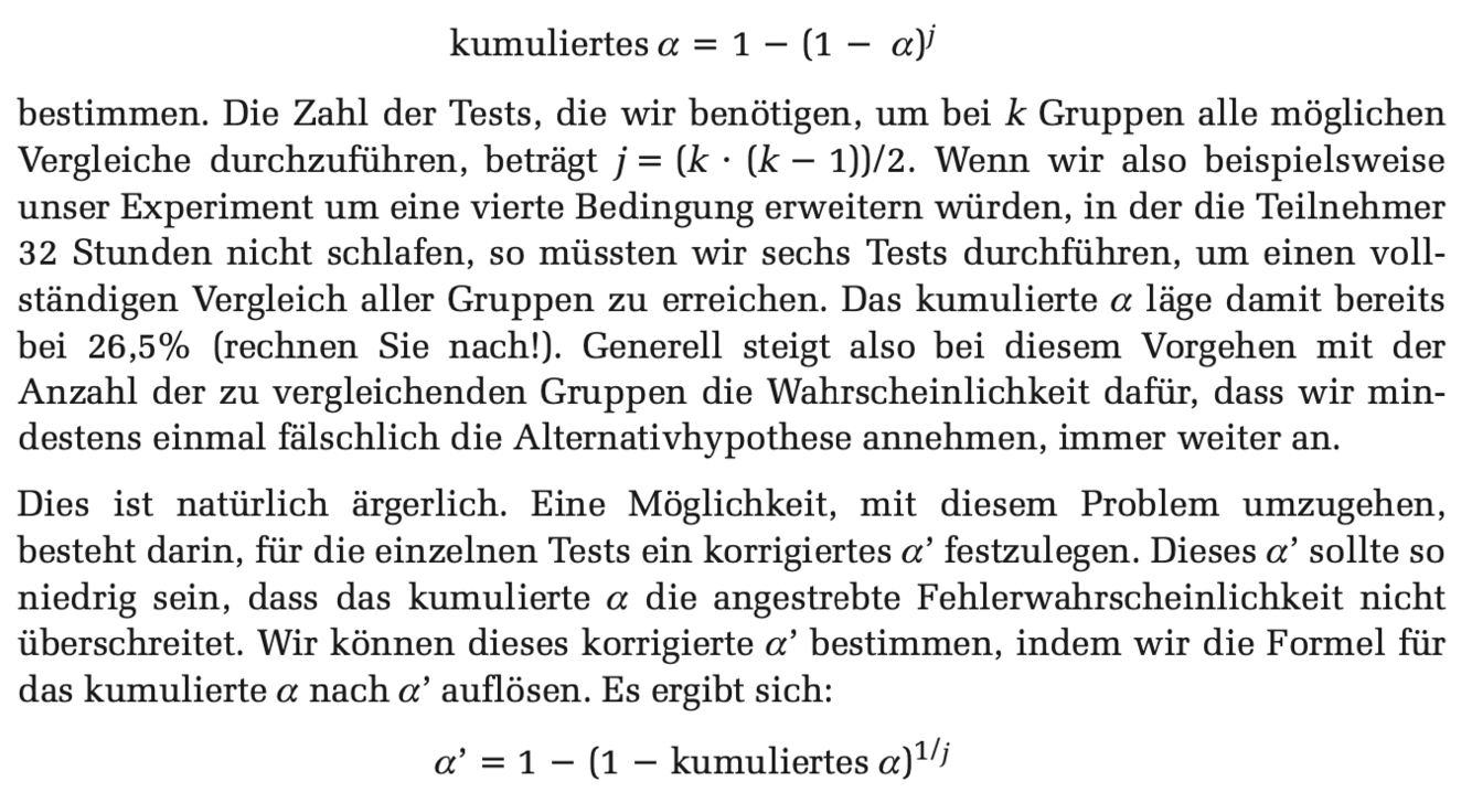Durch die Bonferroni-Korrektur lässt sich bei Bedarf das kumulierte α korrigieren.