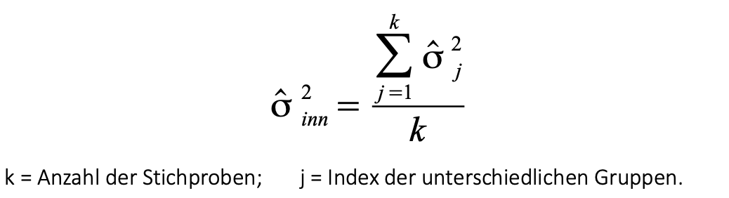 Wir addieren alle ermittelten Varianzen und teilen sie durch k, die Anzahl der Stichproben