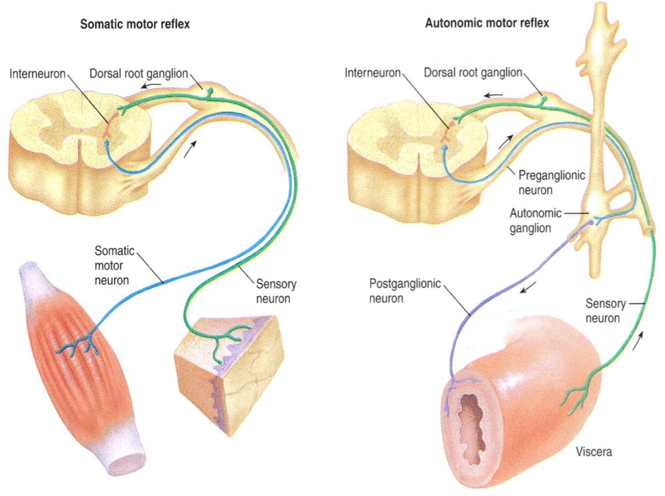 What is the difference between the somatic motor reflex and the autonomic motor reflex ?